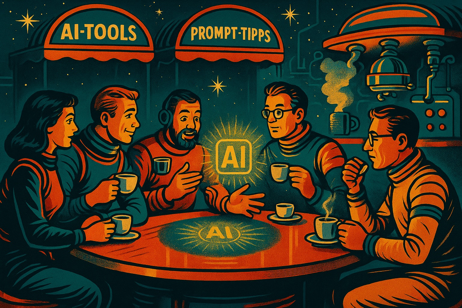 Aus der KI-Werkstatt ist das KI-Cafè gewachsen. Es ist unser entspannter zwanglosen Platz zum Austausch – so eine Art KI-Espresso-Stand auf dem digitalen Marktplatz. Hier trifft man sich, schlürft zwei/drei Espressi, um dabei genüsslich, konstruktiv, kritisch über KI nachzudenken – zu sprechen – zu philosophieren. Hier diskutieren wir mir großartigen Gästen über den KI-Einsatz in Redaktionen, über neue Ansätze und Angebote, über gute wie schlechte Erfahrungen – ganz zwanglos. Die nächsten Termine sind in Planung.